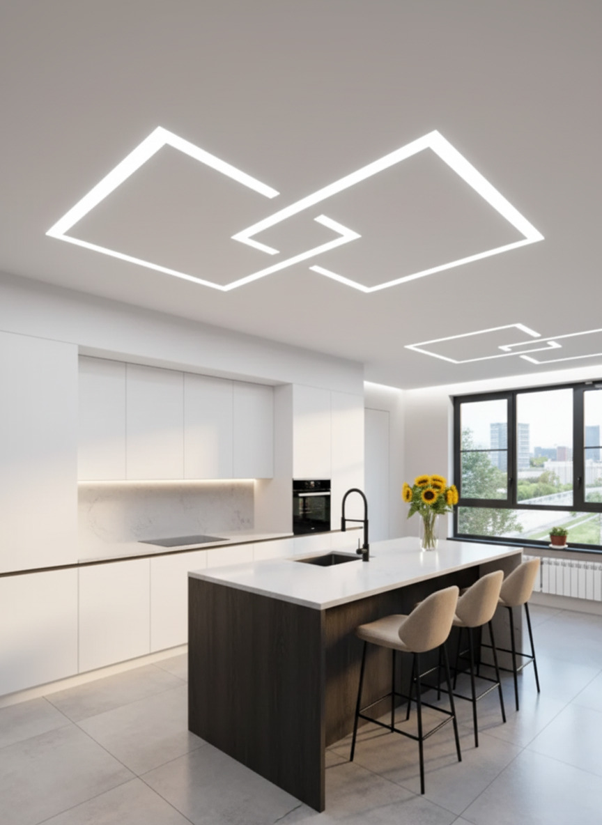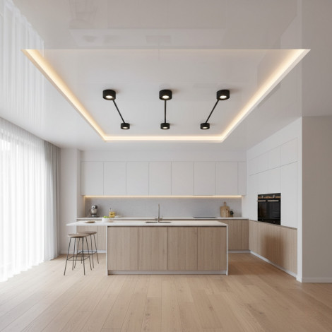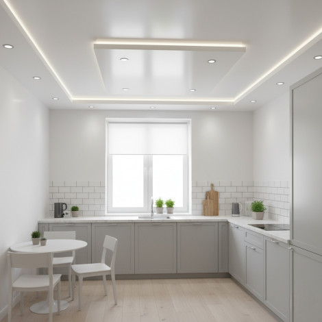 Бесщелевой натяжной потолок 8 м² со световыми линиями