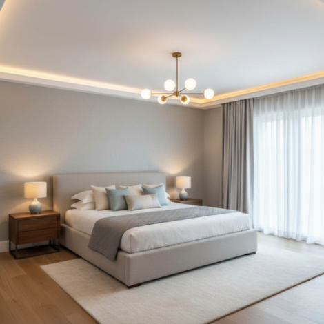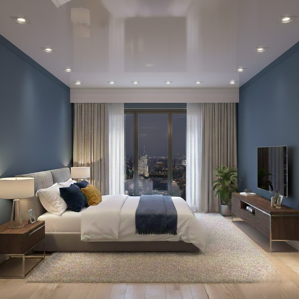 Почему натяжной потолок в спальной комнате – практичное решение?